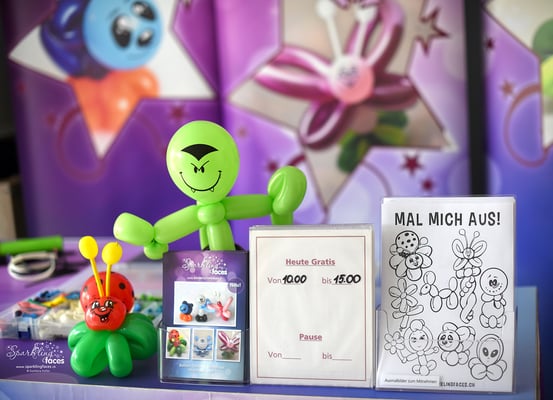 Bring these coloring pages to your next event and make an unforgettable impression on children and parents alike. Everyone will be so excited to color in pictures of their favorite balloon sculptures, put some glitter on their tiger face painting, and create their very own designs on the sheets where blank faces are provided.