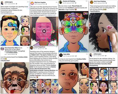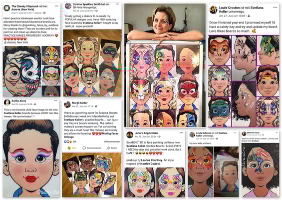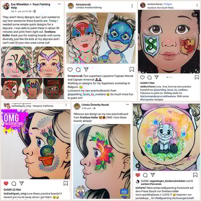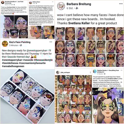 Check out this sensational new product that is destined to take over the face painting world: plastic practice boards with kid’s faces printed on in FULL COLOR!
