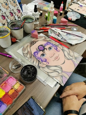 The convention has started on Wednesday with different intensive workshops. These are optional classes for the ones who wanted to learn more from their favorite artist as groups were limited to 12 students. My workshop was called “Beautiful beginnings” and was for the ones, who has just started face painting.
