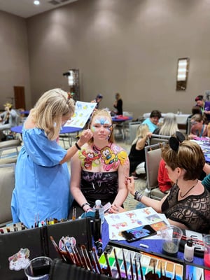 I have attended each FABAIC since 2012 and love this incredible event with all my heart. With over 500 students it is considered to be the world’s largest convention with multiple classes not only on face painting, but also airbrush, henna, balloon twisting, glitter tattoos, special effects and so much more!